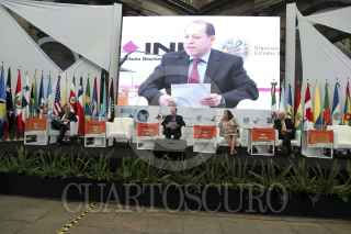 CIUDAD DE MÉXICO, 05OCTUBRE2016.- El consejero Marco Antonio Baños, durante durante el VII Foro de la Democracia Latinoamericana, en el Palacio de Minería. FOTO: INE /CUARTOSCURO.COM