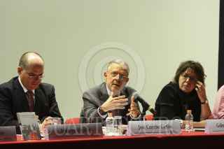 CIUDAD DE MÉXICO, 05OCTUBRE2016.- Daniel Moreno, periodista y Arno Burkholder, autor, durante la presentación del libro "La red de los espejos. Una historia del diario Excélsior, 1916-1976" realizado en el centro Cultural Bella Epoca del Fondo de Cultura Económica. FOTO: ADOLFO VLADIMIR /CUARTOSCURO.COM