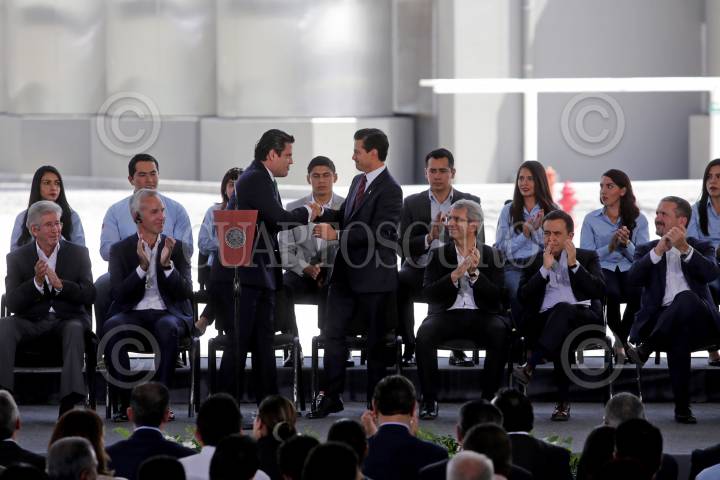 OCOTLAN, JALISCO. 06OCTUBRE2016.- Enrique Peña Nieto, presidente de México, Jorge Aristóteles Sandoval Díaz, gobernador de Jalisco, directivos nacionales e internacionales de Nestlé, así como autoridades federales y estatales encabezaron la inauguración de la nueva fabrica de nutrición infantil “Nantli” de Nestlé en municipio ya mencionado de la región Ciénega. FOTO : FERNANDO CARRANZA GARCIA / CUARTOSCURO.COM