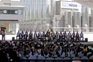 OCOTLAN, JALISCO. 06OCTUBRE2016.- Enrique Peña Nieto, presidente de México, Jorge Aristóteles Sandoval Díaz, gobernador de Jalisco, directivos nacionales e internacionales de Nestlé, así como autoridades federales y estatales encabezaron la inauguración de la nueva fabrica de nutrición infantil “Nantli” de Nestlé en municipio ya mencionado de la región Ciénega. FOTO : FERNANDO CARRANZA GARCIA / CUARTOSCURO.COM