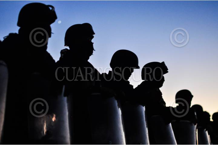 MAZAPIL, ZACATECAS, 06OCTUBRE2016.- Mina Peñasquito considerada la más importante debido a su producción en América Latina suspendió sus actividades debido a que pobladores y transportistas se manifiestan bloqueando el acceso a trabajadores e insumos (más no la salida) debido al incumplimiento de compromisos adquiridos por parte de la empresa minera operada por GoldCorp. La Policía Estatal, Ministerial y Tránsito del Estado, realizó un operativo el martes pasado donde intentaron a los inconformes. FOTO: MISAEL VALTIERRA / CUARTOSCURO.COM