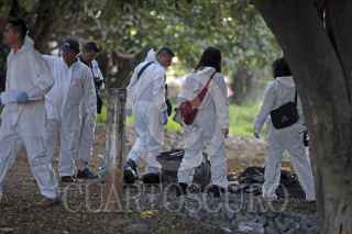CUERNAVACA, MORELOS, 07AGOSTO2016.- Peritos de la procuraduría de justicia del estado realizan las investigaciones correspondientes en el lugar donde fue hallado un cuerpo de una persona desmembrada ubicado en la antigua vía de ferrocarril en el pueblo de Chamilpa. El cadáver estaba dentro de unas bolsas de basura y tenía un mensaje. FOTO: MARGARITO PÉREZ RETANA /CUARTOSCURO.COM