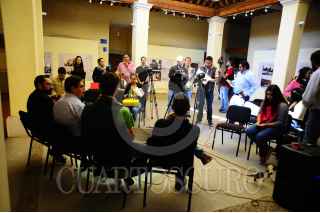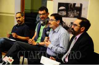 ZACATECAS, ZACATECAS, 07OCTUBRE2016.- Alfonso Vázquez Sosa, director del Instituto Zacatecano de Cultura, Héctor Ávila Ovalle, jefe de enseñanza e investigación del IZC , Sergio Mayorga Magallanes sub director de la Fototeca y Jaime Robledo Martínez, historiador presentaron el programa "Perspectivas de la Fotografía, Práctica e Investigación" como parte de los eventos del X aniversario de la Fototeca de Zacatecas que se realzaran los días 13 y 14 de Octubre. FOTO: CARLOS SEGURA /CUARTOSCURO.COM