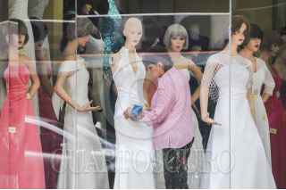 CIUDAD DE MÉXICO, 08OCTUBRE2016.- Una mujer viste a un maniquí dentro del escaparate de una tienda de vestidos sobre la calle 20 de noviembre en el centro histórico. FOTO: DIEGO SIMÓN SÁNCHEZ /CUARTOSCURO.COM