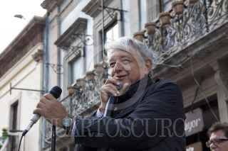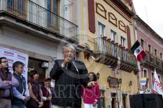 GUANAJUATO, GUANAJUATO, 090CTUBRE2016.- Andrés Manuel López Obrador, Presidente de Morena realizó un mitin en la explanada de la Catedral, esta Ciudad con Militantes de este Partido Político. y acompañado del dirigente de Morena de este Estado. FOTO: ANTONIO CRUZ /CUARTOSCURO.COM