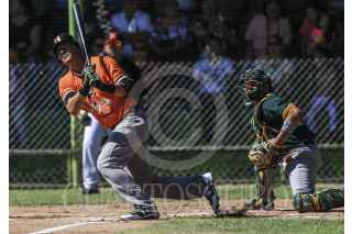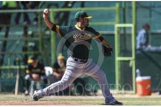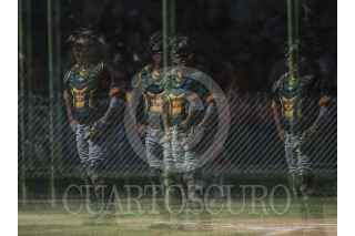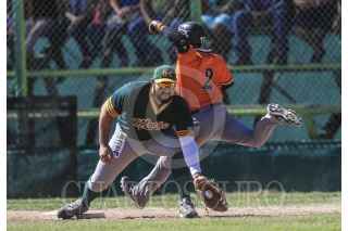 HERMOSILLO, SONORA, 09OCTUBRE2016.- Jorge Flores de Naranjeros es puesto out en primera base, durante el último partido de la pretemporada de la Liga Mexicana del Pacifico (LMP) y la Mexican BaseBall Fiesta con el encuentro de Naranjeros vs Cañeros, en el Estadio Padre Kino, en Magdalena de Kino Sonora FOTO: LUIS GUTIÉRREZ /NORTEPHOTO.COM/CUARTOCURO.COM