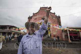 PARACHO, MICHOACÁN, 14OCTUBRE2016.- En la comunidad de Nurío se realizó la edición 19 de la Feria de la Mazorca en donde se llevarón a cabo competencias de artesanías, gastronómicas, textiles y a la mejor mazorca. El pueblo de Nurío fue el primero que retomó los usos y costumbres a principios de este siglo, luego de la visita del sub comandante Marcos y que fue sede de el Tercer Congreso Nacional Indígena, el consejo de la comunidad se compone de 30 K'eris y un representante o jefe de tenencia y la seguridad está a cargo de la Policía comunitaria elegida por el pueblo. El objetivo de la feria es comercializar al exterior del estado y el país la producción de el maíz que se cosecha, hasta ahora sólo se consume en la región; a la par se festeja a la Inmaculada Concepción en el templo del Apóstol Santiago, construcción que data del siglo XVI. FOTO: ALAN ORTEGA /CUARTOSCURO.COM