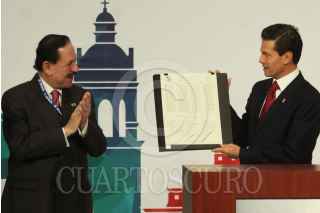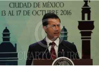 CIUDAD DE MÉXICO, 14OCTUBRE2016.- El presidente Enrique Peña Nieto presidió la “72 Asamblea de la Sociedad Interamericana de Prensa”, en donde firmó un acuerdo de participación con la Sociedad para la protección de periodistas. Al evento asistió Juan Francisco Ealy Ortiz, director general de El Universal, Pierre Manigautt, director de la Sociedad Interamericana de Prensa, Juan Francisco Ealy Lanz, entre otros. FOTO: MARÍA JOSÉ MARTÍNEZ /CUARTOSCURO.COM