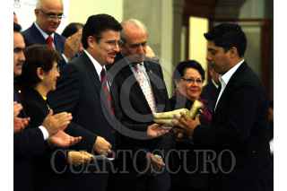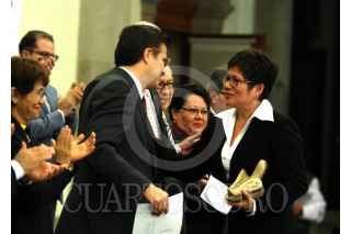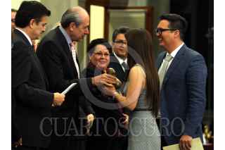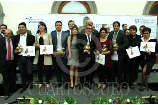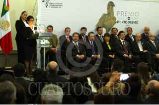 CIUDAD DE MÉXICO, 14OCTUBRE2016.- Laura Castellanos, ganadora del premio por mejor Reportaje de Investigación por su trabajo "Fueron los federales" publicado en Aristegui Noticias y Proceso, durante la entrega del Premio Nacional de Periodismo a los mejores trabajos periodísticos en el país. El Comité Ciudadano del PNP, en el Museo del Castillo de Chapultepec, se entregó el reconocimiento a los mejores trabajos en Reportaje, Crónica, Fotografía, Caricatura, científico, entrevista y trayectoria. FOTO: ADOLFO VLADIMIR /CUARTOSCURO.COM