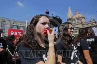 GUADALAJARA, JALISCO. 15 OCTUBRE 2016.- Esta mañana la asociación civil A21 con presencia en 26 países, la cual es integrada principalmente por jóvenes, realizaron una marcha denominada "Caminando por la Libertad" partiendo de Av. Chapultepec y Vallarta y como destino Plaza de Armas en el centro histórico y a la cual asistieron alrededor de 500 personas en su mayoría mujeres, la misma con la finalidad de crear conciencia sobre la necesidad de combatir la trata de personas y esclavitud moderna. FOTO : FERNANDO CARRANZA GARCIA / CUARTOSCURO.COM.