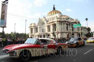 CIUDAD DE MÉXICO, 15OCTUBRE2016.- Los autos participantes de la “Carrera Panamericana” de autos clásicos, llegan a la meta al Palacio de Bellas Artes. después de salir de la Ciudad de Puebla este medio día donde cientos de aficionados ya los esperaban. FOTO: ANTONIO CRUZ /CUARTOSCURO.COM