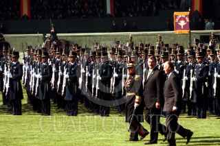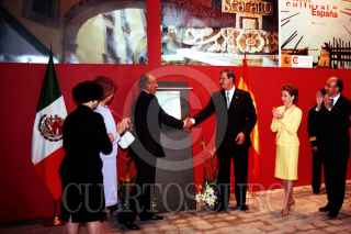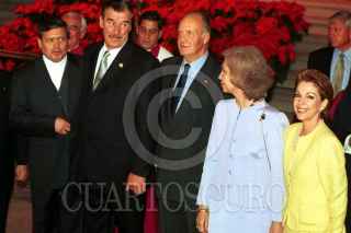 Los reyes Juan Carlos I y Sofía de España a la salida de la Catedral Metropolitana, en el Centro Histórico capitalino, se despiden del presidente Vicente Fox y su esposa Martha Sahagun. FOTO: Susana Navarrete/CUARTOSCURO.COM