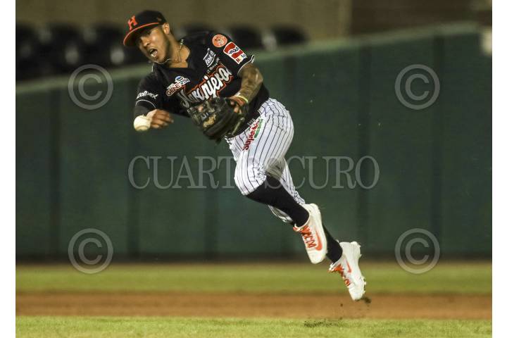 HERMOSILLO, SONORA, 15OCTUBRE2016.- Jorge Flores hace un tiro a primera base,durante partido 2 de beisbol entre Naranjeros de Hermosillo vs Mayos de Navojoa. Temporada 2016 2017 de la Liga Mexicana del Pacifico. FOTO: LUIS GUTIÉRREZ /CUARTOSCURO.COM
