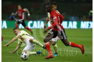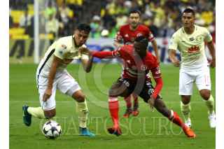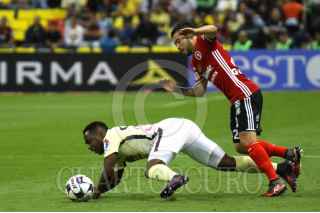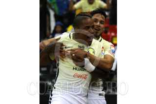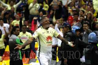 CIUDAD DE MÉXICO, 15OCTUBRE2016.- Las Águilas del América vencieron en el estadio Azteca un gol por cero a los Xolos de Tijuana, en el partido correspondiente a la jornada 13 del Torneo Clausura 2016. En la imagen, Michael Arrollo (11), celebra su gol con el que los azulcremas ganan el encuentro. FOTO: ADOLFO VLADIMIR /CUARTOSCURO.COM