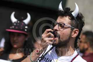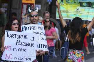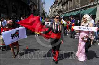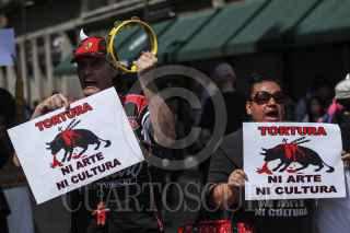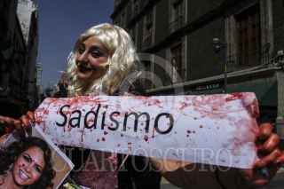 CIUDAD DE MÉXICO, 16OCTUBRE2016.- Jóvenes de organizaciones en pro de los derechos de los animales se manifestaron en la calle Madero para protestar en contra de las corridas de toros. Los manifestantes indicaron que los empresarios taurinos planean la construcción de otra Plaza de Toros. FOTO: ADOLFO VLADIMIR /CUARTOSCURO.COM