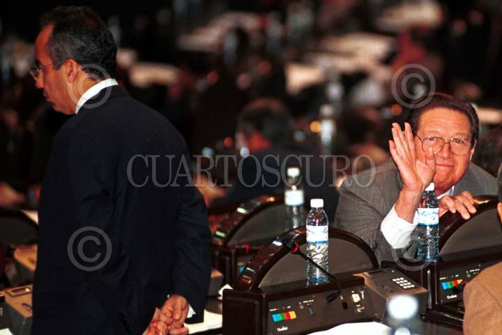 Rafael Rodríguez Barrera (der.), coordinador de la fracción priísta y Felipe Calderon Hinojosa (de espalda), coordinador de la fracción panista ambos de la Cámara de Diputados, durante la sesión ordinaria en la Cámara Baja. FOTO: Oswaldo Ramírez/CUARTOSCURO.COM