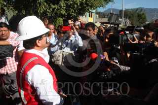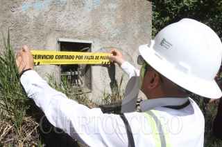 SANTA LUCÍA DEL CAMINO, OAXACA., 17OCTUBRE2016.- Pobladores del municipio de Santa Lucía del Camino, conurbado a la ciudad de Oaxaca retuvieron este lunes al síndico Procurador, José García -de camisa de cuadros blancos y rojos- debido a que el municipio no ha pagado a la CFE la energía eléctrica de cuatro pozos que surten de agua a la agencia municipal de Rancho Nuevo. Por tal motivo trabajadores de la comisión acudieron a esta localidad para desconectar el suministro de energía a los pozos. De acuerdo con la CFE de adeudan 3.9 millones de pesos desde octubre del 2015. FOTO: ARTURO PÉREZ ALFONSO /CUARTOSCURO.COM