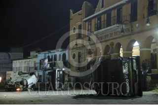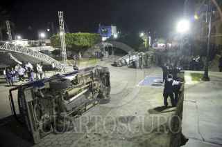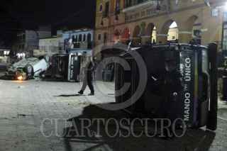 TOTOLAPAN, MORELOS, 17OCTUBRE2016.- Se enfrentan pobladores por construcción de mercado en Totolapan. Dos grupos de pobladores se enfrentaron esta noche por la construcción de un mercado. Resultaron heridos 5 habitantes. Volcaron y vandalizaron 4 patrullas del Mando Único. FOTO: MARGARITO PÉREZ RETANA /CUARTOSCURO.COM