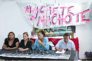 CIUDAD DE MÉXICO, 18OCTUBRE2016.- Kenia Cuevas, Cassandra Huaso y Rocío Suárez, trabajadoras sexuales transgénero, ofrecieron una conferencia de prensa para relatar los asesinatos de dos de sus compañeras y exigir a la procuraduría capitalina que esclaresca los casos. Además demandaron protección por parte de las autoridades ante la constante discriminación que sufren durante su labor. FOTO: DIEGO SIMÓN SÁNCHEZ /CUARTOSCURO.COM