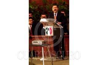 Manlio Fabio Beltrones, líder de la CNOP, durante su discurso de inauguración de la Asamblea General Extraordinaria de esta organización priísta. FOTO: Victoria Valtierra/CUARTOSCURO.COM