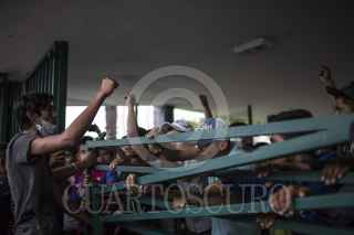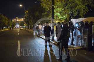 MORELIA, MICHOACÁN, 18OCTUBRE2016.- Funcionarios y alumnos de la Universidad Michoacana de San Nicólas de Hidalgo (UMSNH), intentaron liberar la toma que mantiene el Movimiento de Alumnos Rechazados en Ciudad Universitaria. Elementos del Grupo de Operaciones Especiales se hicieron presentes para evitar enfrentamientos entre estudiantes; hasta el momento CU permanece tomado y la Policía Michoacán mantiene el operativo en las inmediaciones de la casa de estudio. FOTO: ALAN ORTEGA /CUARTOSCURO.COM