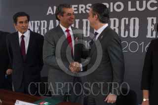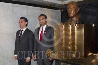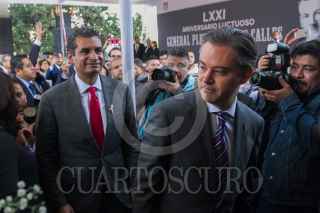 CIUDAD DE MÉXICO, 19OCTUBRE2016.- Enrique Ochoa Reza, líder del PRI, y Aurelio Nuño Jiménez, secretario de Educación Pública (PRI), encabezaron el 71 aniversario luctuoso del ex presidente Plutarco Elías Calles, también fundador del PRI, en el Monumento a la Revolución. FOTO: MOISÉS PABLO /CUARTOSCURO.COM