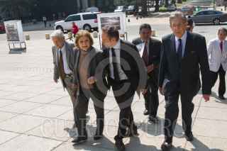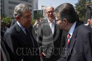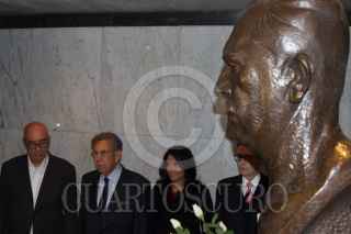 CIUDAD DE MÉXICO, 19OCTUBRE2016.- Dante Delgado, líder del Movimiento Ciudadano, Cuauhtémoc Cárdenas Solórzano, Alejandra Barrales, líder del PRD, y Alfonso Suárez del Real, diputado de Morena, encabezaron una guardia de honor en el busto del general Lázaro Cárdenas del Río, ubicado en el Monumento a la Revolución, en el marco de su aniversario luctuoso. FOTO: MOISÉS PABLO /CUARTOSCURO.COM