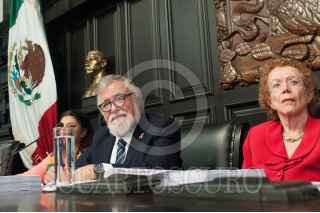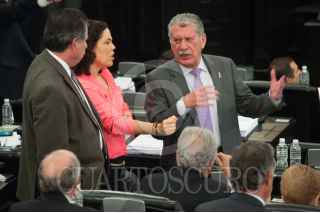 CIUDAD DE MÉXICO, 19OCTUBRE2016.- Alejandro Encinas e Irma Cué de Duarte, presidente y segunda vicepresidenta de la mesa directiva de la Asamblea Constituyente, durante la sesión ordinaria en la vieja casona de Xicoténcatl. FOTO: DIEGO SIMÓN SÁNCHEZ /CUARTOSCURO.COM