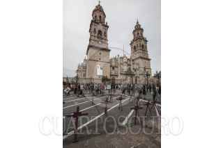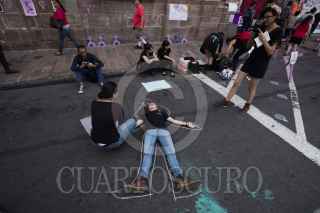 MORELIA, MICHOACÁN, 19OCTUBRE2016.- La Coordinadora de Feministas en Michoacán convocó para protestar frente a Palacio de Gobierno contra los feminicidios en el estado y al llamado"Miércoles Negro", en solidaridad después del asesinato de la adolescente Lucía en Argentina. Mujeres de todas las edades gritaron consignas y mostraron pancartas de protesta obstruyendo por casi una hora la circulación de automoviles en la arteria principal de la ciudad. FOTO: ALAN ORTEGA /CUARTOSCURO.COM