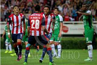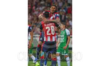 ZAPOPAN, JALISCO.19OCTUBRE2016.- Jugadores de Chivas celebran la anotación de Carlos Peña, en partido correspondiente a los Cuartos de Final de la Copa MX 2016, en donde se enfrentan las Chivas de Guadalajara frente a Alebrijes de Oaxaca, en encuentro que se lleva a cabo en el Estadio Chivas. El marcador final fue de 1-0 a favor del equipo del Guadalajara. FOTO : FERNANDO CARRANZA GARCIA / CUARTOSCURO.COM
