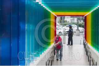 CIUDAD DE MÉXICO, 21CTUBRE2016.- Un trabajador limpia el pasamanos de uno de los accesos al Centro de Cultura Digital, a un costado de la estela de la luz. FOTO: DIEGO SIMÓN SÁNCHEZ /CUARTOSCURO.COM