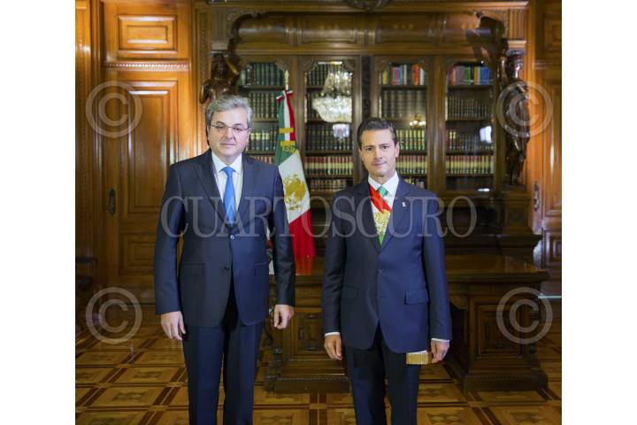 CIUDAD DE MÉXICO, 24OCTUBRE2016.- El Presidente Enrique Peña Nieto recibió hoy en el Palacio Nacional las cartas credenciales de 20 nuevos Embajadores en México. Al darles la bienvenida a nuestro país, el Presidente Peña Nieto les refrendó el interés de México por fortalecer la cooperación con sus naciones. En la imagen, el Primer Mandatario saluda a Joseph Henry Smith, de Ghana. FOTO: PRESIDENCIA /CUARTOSCURO.COM