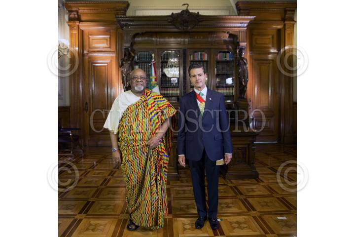 CIUDAD DE MÉXICO, 24OCTUBRE2016.- El Presidente Enrique Peña Nieto recibió hoy en el Palacio Nacional las cartas credenciales de 20 nuevos Embajadores en México. Al darles la bienvenida a nuestro país, el Presidente Peña Nieto les refrendó el interés de México por fortalecer la cooperación con sus naciones. En la imagen, el Primer Mandatario saluda a Joseph Henry Smith, de Ghana. FOTO: PRESIDENCIA /CUARTOSCURO.COM