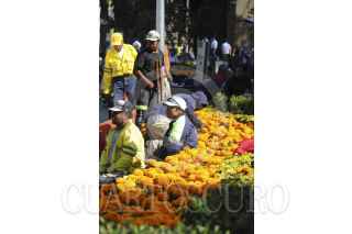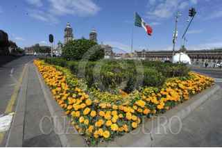 CIUDAD DE MÉXICO, 24OCTUBRE2016.- Trabajadores del gobierno capitalino iniciaron con la colocación de flor de cempasúchil en las jardines del primer cuadro, como parte de los festejos del Día de Muertos. FOTO: ARMANDO MONROY /CUARTOSCURO.COM