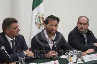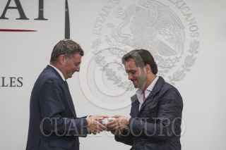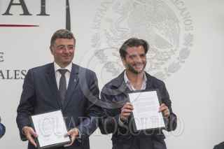 CIUDAD DE MÉXICO, 24OCTUBRE2016.- Jörg Leichtfried, ministro de Infraestructura de Austria, y Rafael Pacchiano Alamán, secretario de Medio Ambiente, durante la firma de un convenio de colaboración, entre ambos países. FOTO: ISAAC ESQUIVEL /CUARTOSCURO.COM