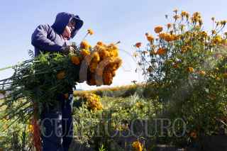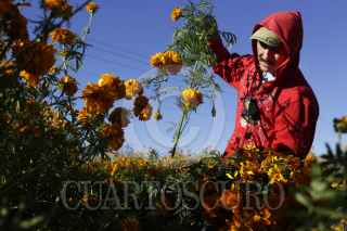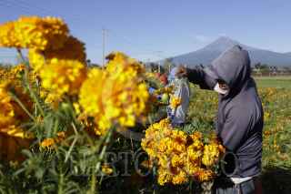 SAN PEDRO CHOLULA, PUEBLA, 25OCTUBRE2016.- Inicia la corta de flor de Cempasúchil en los campos de los municipios aledaños al volcán Popocatépetl previo al día de muertos. FOTO: HILDA RÍOS /CUARTOSCURO.COM