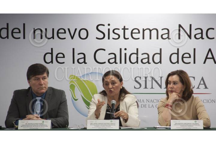 CIUDAD DE MÉXICO, 25OCTUBRE2016.- María Amparo Martínez, directora General del Instituto Nacional de Ecología y Cambio Político, y Martha Garciarivas palmeros en la presentación del nuevo Sistema Nacional de Información de la Calidad del Aire (SINAICA) dicho sistema conjunta la información de diferentes estaciones de monitoreo ubicadas en 29 estados del país. FOTO: ANTONIO CRUZ /CUARTOSCURO.COM