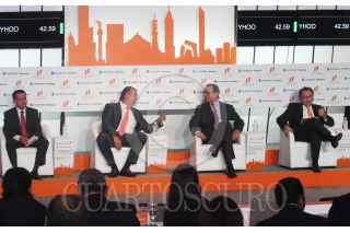 CIUDAD DE MÉXICO, 25OCTUBRE2016.- Los empresarios Gerardo Gutiérrez Candiani, Juan Pablo Castañón Castañón, y Gerardo Corrochiano, participaron en el Foro Impulsando a México que fue inaugurado esta mañana por Carlos Rojo Macedo, director general de Grupo Financiero Interacciones, y Enrique Quintana, director general editorial de El Financiero. Incluyó la participación de los gobernadores electos José Ignacio Peralta, de Colima, Alejandro Murat Hinojosa, de Oaxaca, y Francisco García Cabeza de Vaca, de Tamaulipas. FOTO: MARÍA JOSÉ MARTÍNEZ /CUARTOSCURO.COM