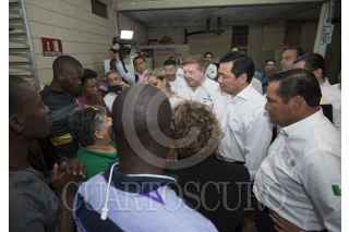 MEXICALI, BAJA CALIFORNIA, 25OCTUBRE2016.- Miguel Ángel Osorio Chong, secretario de Gobernación, acompañado por el Gobernador del Estado de Baja California, Francisco Vega de Lamadrid; los secretarios de Relaciones Exteriores, Claudia Ruiz Massieu, y de Desarrollo Social, Luis Enrique Miranda Nava, y el Subsecretario de Población, Migración y Asuntos Religiosos de la Secretaría de Gobernación, Humberto Roque Villanueva, visitaron el Centro de Mediación Comunitario Cobina, que se ubica en la zona centro de Mexicali, Baja California, en la que dialogó con migrantes haitianos. FOTO: SEGOB /CUARTOSCURO.COM