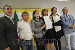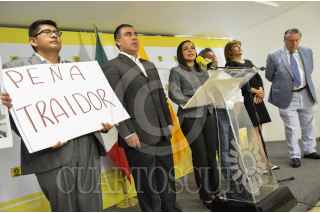 CIUDAD DE MÉXICO, 26OCTUBRE2016.- Beatriz Mojica Morga, secretaria general del Partido de la Revolución Democrática (PRD), anunció que este partido presentó ante la Cámara de Diputados una denuncia de hechos constitutiva de distintos supuestos del delito por traición a la patria contra el Jefe de Ejecutivo Enrique Peña Nieto por traicionar a la patria al permitirle la entrada al país y darle trato de primer mandatario al candidato presidencial estadounidense Donald Trump, a quien la guerrense tildo de persona non grata para los mexicanos. FOTO: MOISÉS PABLO /CUARTOSCURO.COM