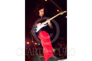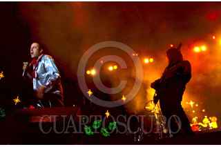 José Manuel Aguilera, guitarrista y cantante de "La Barranca", durante el concierto que ofreciò ayer, junto con "La Lupita" y "Guillotina", en el zócalo de la ciudad. FOTO: Juan Pablo Zamora/CUARTOSCURO.COM