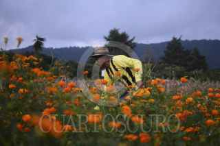 SAN PABLO COAPAN, VERACRUZ, 27OCTUBRE2016.- Jornaleros de San Pablo Coapan trabajan cortando la característica flor de cempasúcil para los festejos del Día de Muertos, con un sueldo de $500 por campo llevan sustento a sus familias en jornadas de hasta 15 horas diarias. FOTO: ALBERTO ROA /CUARTOSCURO.COM