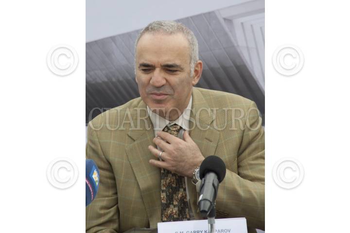 CIUDAD DE MÉXICO, 28OCTUBRE2016.- El maestro del ajedrez Garry Kaspárov platicó con medios de comunicación en la explanada del edificio de Rectoría, en Ciudad Universitaria durante el Gran Encuentro con el ajedrez educativo UNAM 2016. FOTO: ANTONIO CRUZ /CUARTOSCURO.COM