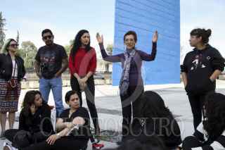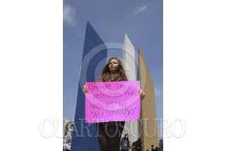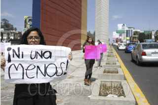 NAUCALPAN, ESTADO DE MÉXICO, 30OCTUBRE2016.-Mujeres del Estado de México se manifestaron en las inmediaciones de las Torres de Satélite para exigir el alto a los feminicidios, y pedir a las autoridades avance en las investigaciones de estos crímenes. El pequeño contingente realizó pancartas y extendieron mantas para los automovilistas. FOTO: GALO CAÑAS /CUARTOSCURO.COM