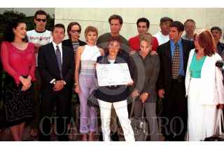 Víctor Noriega y Natalia Esperon -que no asistió- son los principales protagonistas de la telenovela "Por Un Beso", la cual dio el pizarrazo en un conocido restaurante de bosques de las lomas. Mercedes Molto acompaño al galan de esta producción de televisa. FOTO: Edurado Loza/CUARTOSCURO.COM