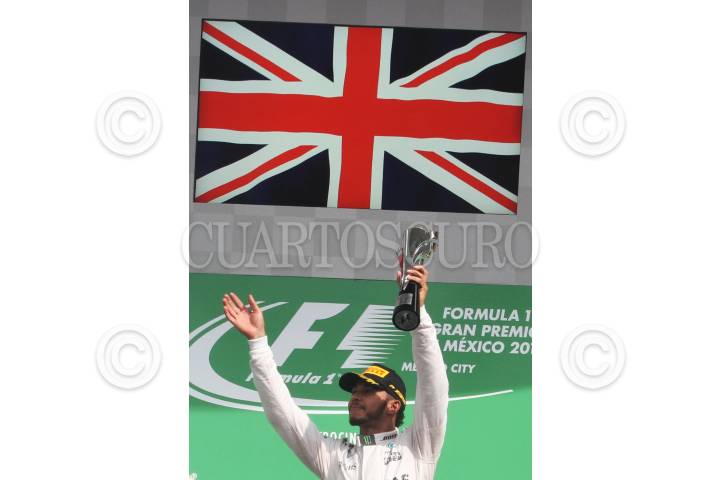 CIUDAD DE MÉXICO, 30OCTUBRE2016.- Lewis Hamilton y Nico Rosberg, ambos de Escudería Mercedes Petronas, y Sebastián Vettel, de Escudería Ferrari, obtuvieron los tres primeros lugares durante la competencia automovilística del “Gran Premio de México 2016”. Al finalizar la premiación el ingeniero Tony Walton de la Escudería Mercedes también fue homenajeado. FOTO: MARÍA JOSÉ MARTÍNEZ /CUARTOSCURO.COM