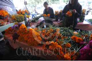 CIUDAD DE MÉXICO, 30OCTUBRE2016.- En el Mercado de San Cosme se vende papel picado, calaveritas de azúcar y flor de cempasúchil y terciopelo para los altares por el Día de Muertos. FOTO: ARMANDO MONROY /CUARTOSCURO.COM