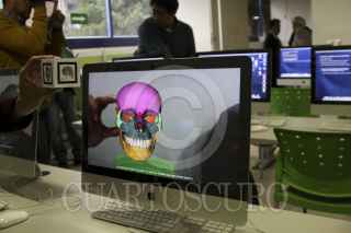 CIUDAD DE MÉXICO, 31OCTUBRE2016.- José Arturo Fernández, director de la facultad de Odontología de la Universidad Nacional Autónoma de México, presentó las salas de realidad virtual y realidad aumentada en dicha facultad. Dicho proyecto es producto del nuevo plan de estudios implementado por la universidad para un alto uso de contenido tecnológico para un mejor aprovechamiento en el ámbito de aprender-aprender. La nueva tecnología funciona con lentes 3D, en las salas de realidad virtual, y con un cubo inteligente, en las de realidad aumentada, el cual se encarga de la proyección de las diferentes huesos y partes del cráneo, así como los dientes. FOTO: GALO CAÑAS /CUARTOSCURO.COM