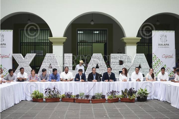 XALAPA, VERACRUZ, 31OCTUBRE2016.- Alrededor de 60 ediles del estado de se reunieron en el Palacio Municipal de Xalapa donde dieron lectura a un posicionamiento en el cual exigen sean depositados el día de hoy los recursos federales, de lo contrario acudirán a instancias federales. Al lugar acudieron los senadores Héctor Yunes Landa y José Francisco Yunes Zorrilla. FOTO: ALBERTO ROA /CUARTOSCURO.COM