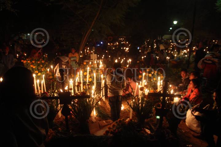 SANTA MARÍA ATZOMPA, OAXACA., 01NOVIEMBRE2016.- Tal y como lo marca la tradición, pobladores del municipio de Santa María Atzompa acuden durante la madrugada de este primero de noviembre al panteón para la "velada a los muertos" y así recibirlos y departir con ellos. Los familiares de los fallecidos llevan bebidas como café, chocolate o incluso mezcal, además de comida, las tumbas las adornan con flores y velas y ahí pernoctan. FOTO: ARTURO PÉREZ ALFONSO /CUARTOSCURO.COM